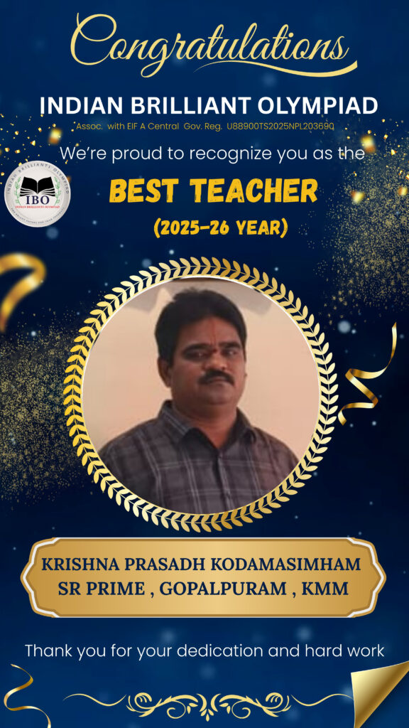 Indian Brilliant Olympiad 2025 – National Level Examination Zone 1, Khammam, was held grandly for the 26th year.